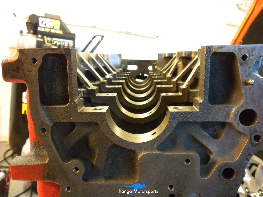 Upon inspection of the F54 block there was some areas where small chunks of casting flash could be broken off. Before sending off the block to the machine shop to fix the piston and main bores I decide to grind away the worst of the casting flash and improve the overall wall finish.
