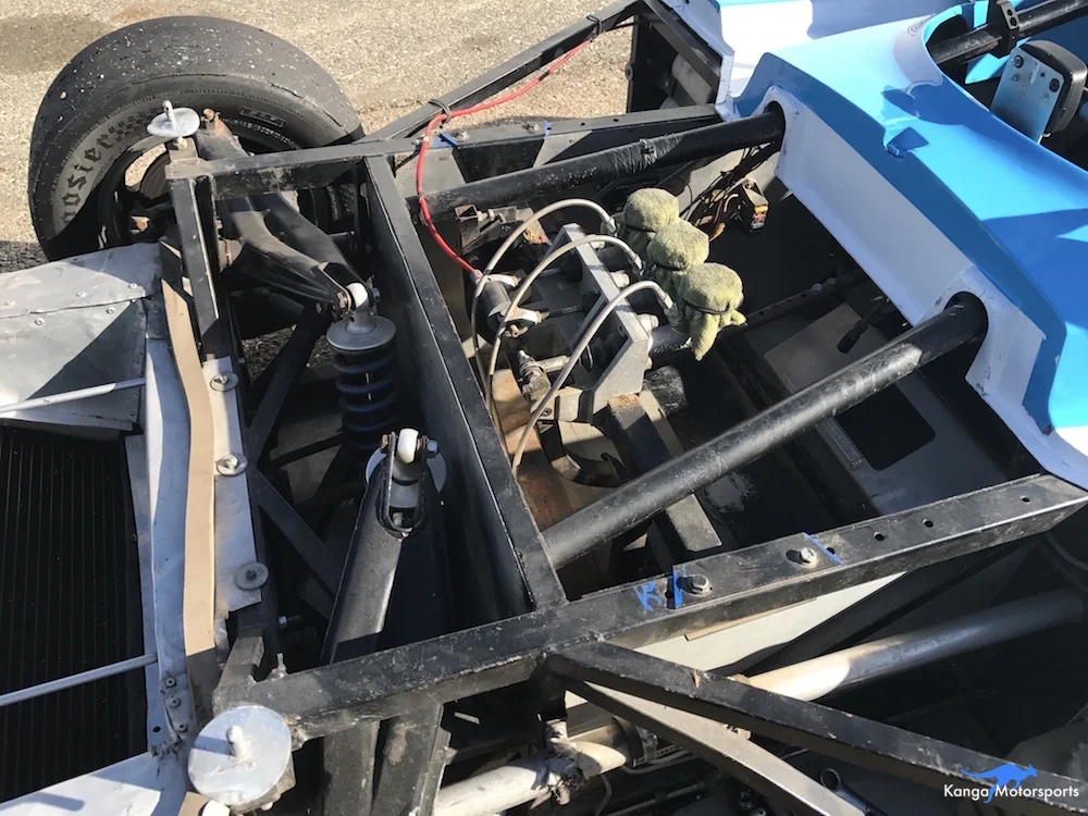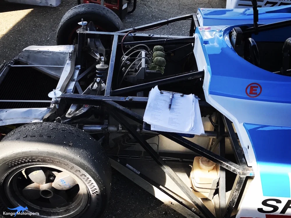 Unlike most production cars the seat in the Spec Racer Ford doesn't move. To accommodate shorter and taller drivers the pedal assembly moves back and forth. During endurance events the pedals can be quickly slid into place by the pit crew if they have the right set of tools.